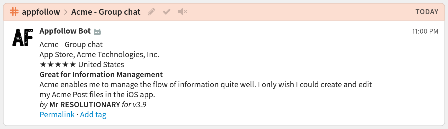 2. Decide where to send AppFollow notifications, and generate the integration URL.
